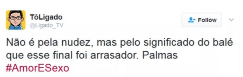 A internet foi à loucura com a perfomance. “Não é pela nudez, mas pelo significado do balé que esse final foi arrasador. Palmas”, disse um internauta.