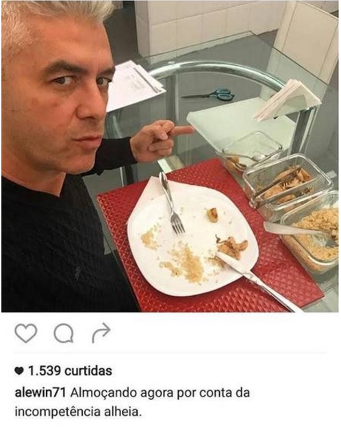 Segundo o jornal “Extra”, o empresário publicou uma foto mostrando o dedo do meio reclamando do horário que estava almoçando com a seguinte legenda: “Almoçando agora por conta da incompetência alheia”.