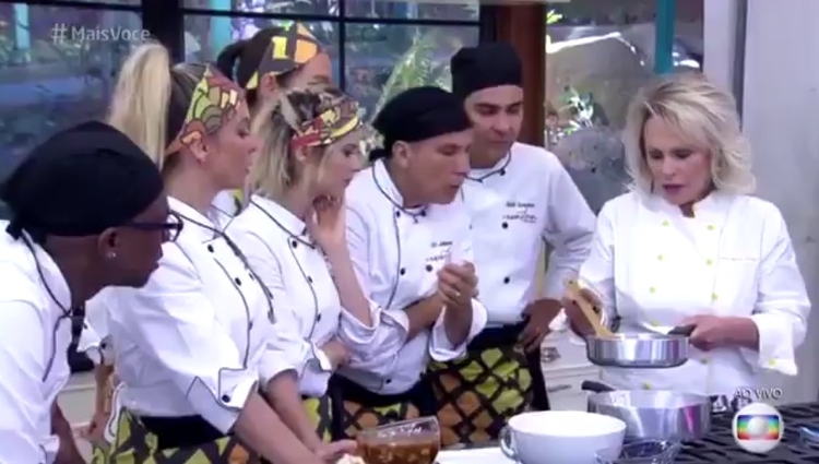 Ana Maria Braga foi surpreendida enquanto preparava uma receita nesta terça-feira (12) no “Mais Você”.