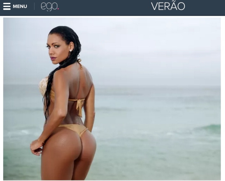 Ana Paula Evangelista mostra bumbum avantajado na praia