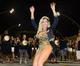 Ana Paula Minerato sambou muito e acabou deixando parte do bumbum à mostra em noite de samba.