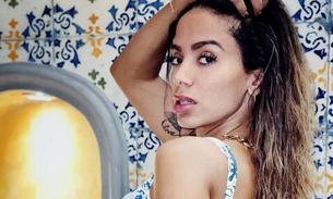 Anitta surge nua enrolada em papel transparente e agita web
