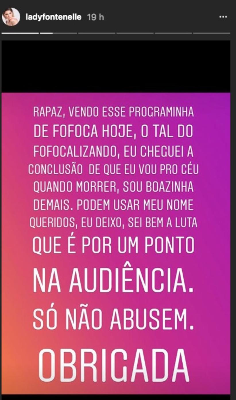 No Stories do Instagram, ela compartilhou comentários de pessoas lhe apoiando e outras detonando a postura de Otaviano e Flávia, uma delas chegando a chamar o apresentador de "ótimo ator" por ter chorado no programa.