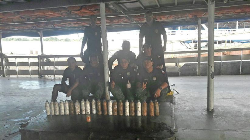 No porto do município de Tabatinga, a 1.109 quilômetros de Manaus em linha reta, cerca de 15 quilos de drogas, semelhantes a pasta base de cocaína, foram encontradas armazenadas em 21 garrafas PETs de 2 litros, dentro da caixa d’água da embarcação M Fernandes, conforme informou o Tenente Orlando Santos, chefe da equipe ‘Sentinela’ pela Polícia Militar no município.