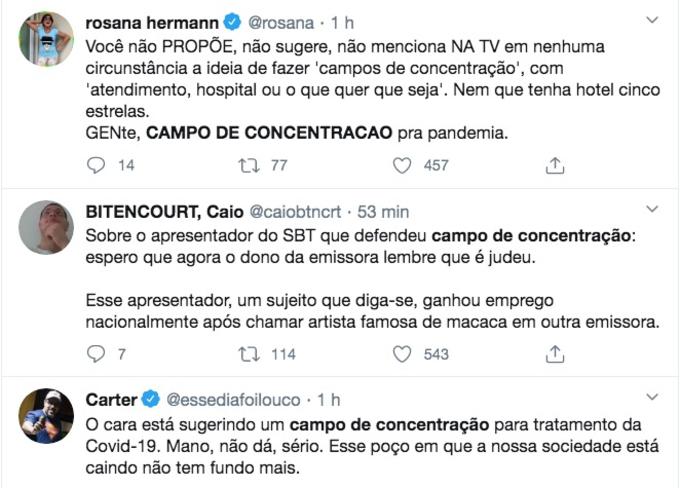 A declaração está sendo bastante criticada nas redes sociais. A hashtag ‘Campo de Concentração’ está entre os assuntos mais comentados do Twitter.
