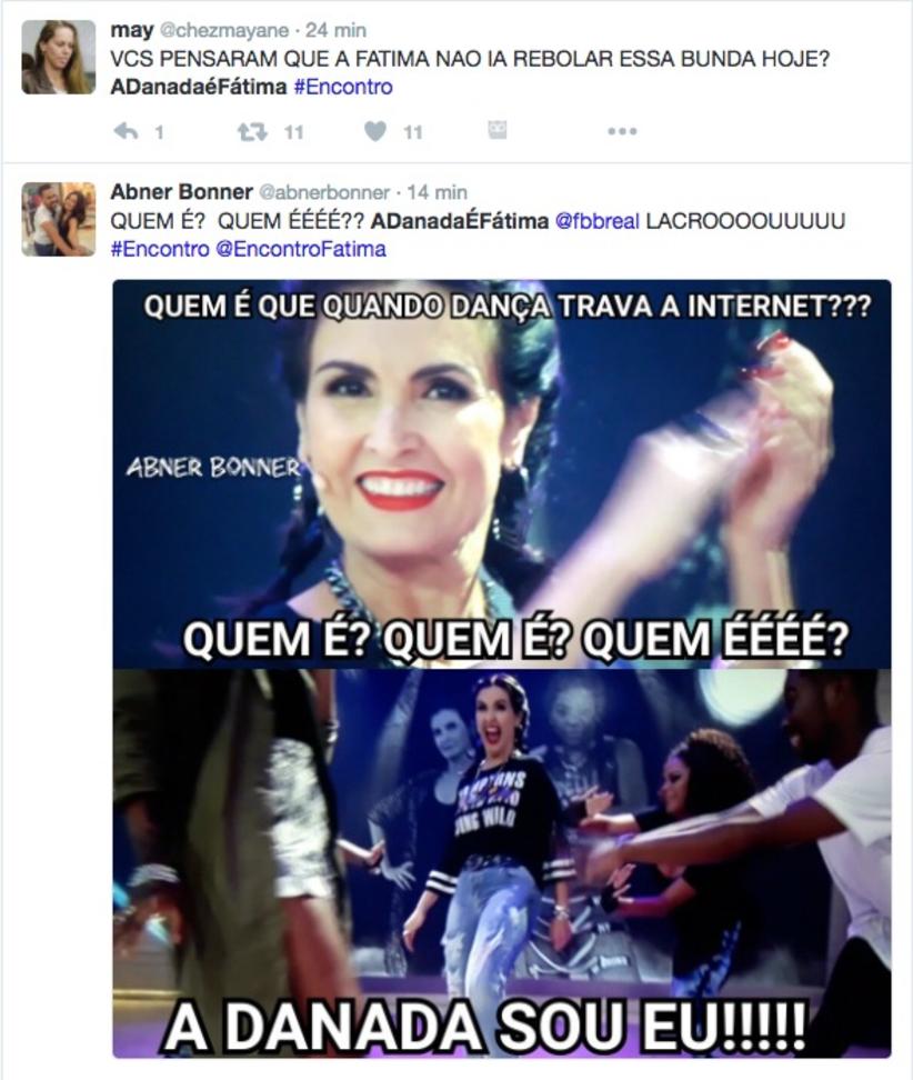 A hashtag “A Danada é Fátima” ficou nos trending topics do Twitter e a apresentadora ganhou memes.