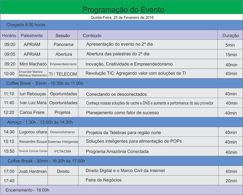 O encontro é promovido pela Associação dos Provedores de Internet do Amazonas (Apriam) e é realizado pela segunda vez no estado. Trata-se da maior programação do segmento na Região Norte.