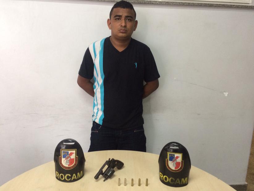 Após abordagem policial, com o homem foi apreendido um revólver calibre 38 com cinco munições intactas.