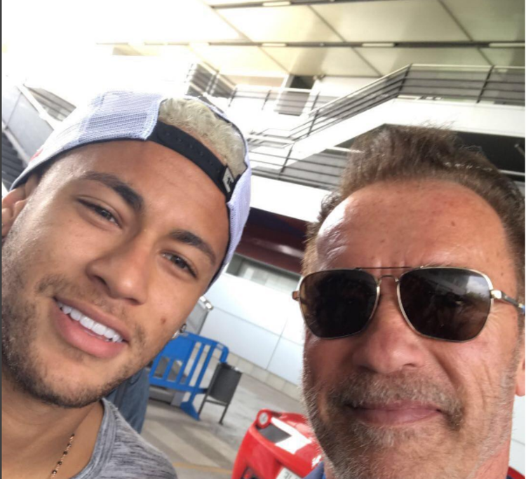 Neymar tieta Arnold Schwarzenegger em Barcelona