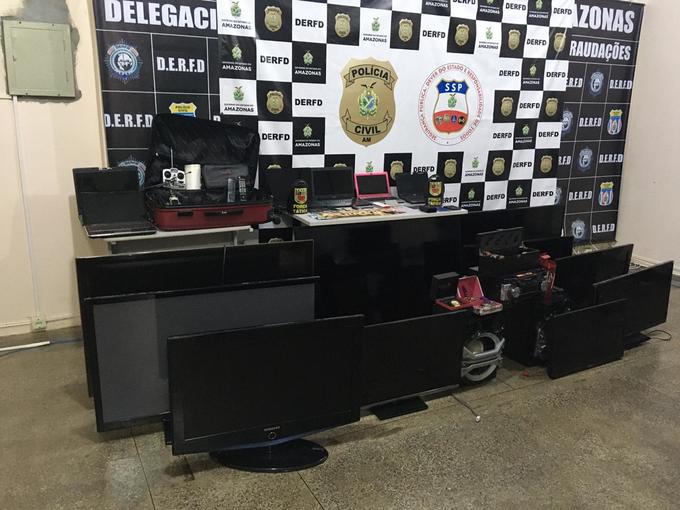 Com os suspeitos foram recuperados 10 televisores, 1 Aparelho de som, 6 notebooks, 22 relógios, vários produtos importados como maquiagens e perfumes, além de R$ 2300 em espécie. A Polícia Civil informou que os objetos estão na Delegacia Especializada De Roubos, Furtos e Defraudações (DERFD) à disposição para reconhecimento das vítimas.
