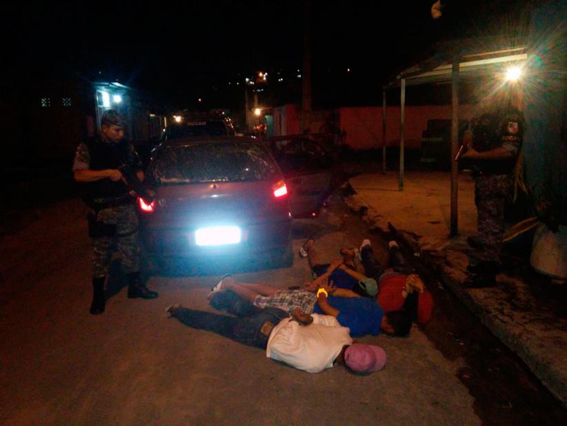 Quando os PMs se deslocaram para o bairro, se depararam em uma das ruas com o bando em sentido oposto. Após abordagem, conseguiram deter os integrantes da quadrilha, que estavam com um revólver calibre 38 com quatro munições intactas, uma espingarda calibre 36 com uma munição do mesmo calibre e cinco de calibre 32 e a quantia de R$ 327,00. O caso foi registrado no 9º Distrito Integrado de Polícia (DIP), no São José, onde foram realizados os procedimentos. Os suspeitos responderão por formação de quadrilha e roubo majorado.