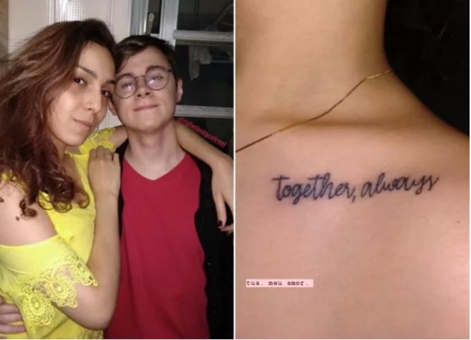 A jovem de 18 anos tatuou “together, always” que significa “juntos, sempre” e publicou uma foto nas redes sociais do desenho. “Tua. Meu amor”, legendou.