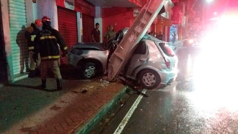 De acordo com informações do Corpo de Bombeiros, a vítima perdeu o controle do Celta cinza, em alta velocidade e bateu no poste.