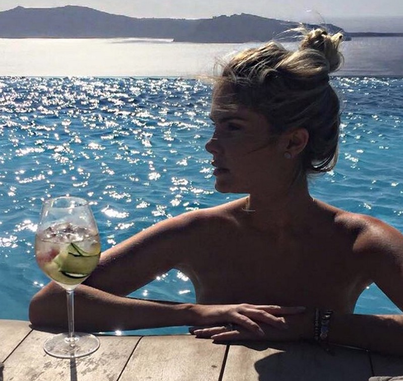 A loira está curtindo o verão na Europa, e neste sábado, 3, publicou uma foto em que aparece sem a parte de cima do biquíni.