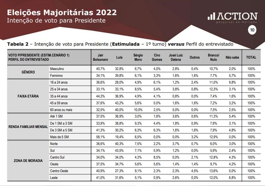 Pesquisa realizada pela Action em parceria com o Portal do Holanda indica que as mulheres em Manaus preferem Lula para presidente, enquanto os homens optam por votar em Bolsonaro. Quanto maior a renda, mais votos o presidente tem entre o eleitorado masculino.