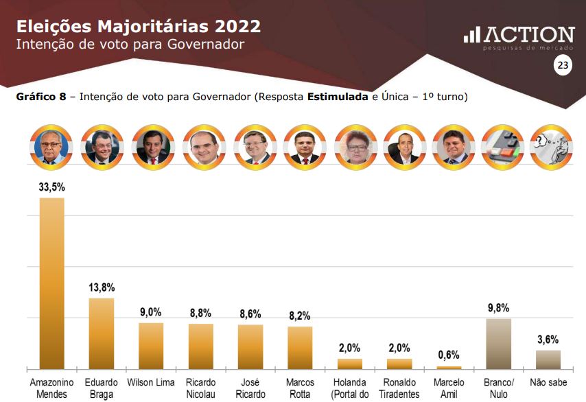 Para o governo do Amazonas, Amazonino Mendes tem o dobro dos votos do segundo colocado, Eduardo Braga. A surpresa é o governador Wilson Lima, encostado no senador. Teria potencial de crescimento e eventualmente chegar ao segundo turno?