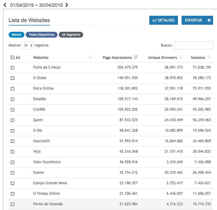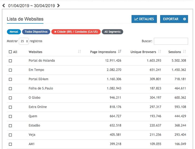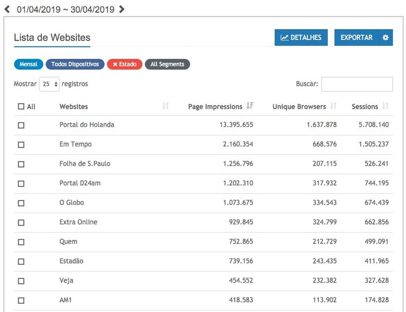 A coluna Bastidores foi acessada por meio milhão de leitores, recorrentes ou não, em abril. Os números são do Google Analytics. Esse é apenas um dado da audiência total do Portal do Holanda no mês. Levantamento do IVC - Instituto Verificador de Comunicação - aponta que o Portal do Holanda continua liderando com folga em Manaus, no Amazonas e em toda a região Norte.No País, ocupa a 15a posição entre os sites auditados.
