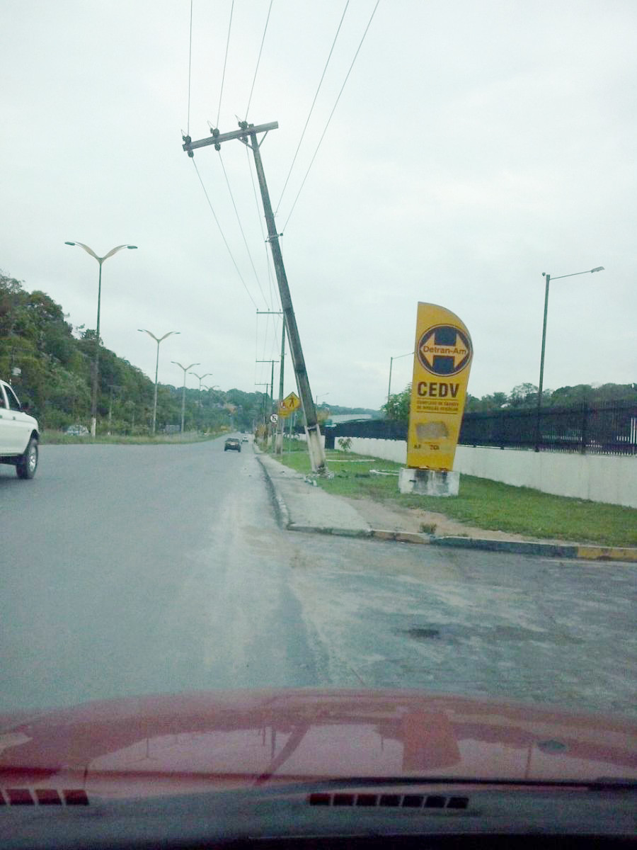 Esse poste, localizado na área de treinamento do Detran vergou e parece querer falar. Quando alunos entram nos carros para fazer teste de direção e passam próximo aos poste a impressão é que ele se inclina mais ainda. Funcionários do Detran acabaram fazendo do problema um motivo para gozações. Segundo eles o poste fala . E juram que muita gente que passou pelo local ouviu o poste perguntar: você viu o Leonel por ai? Leonel é o atual presidente do Detran.