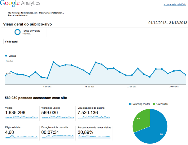 O Portal do Holanda encerrou dezembro contabilizando 7,5 milhões de visualizações de páginas, um recorde desde a sua criação. Segundo dados do Google Analytcs, 569 mil pessoas visitaram o Portal. Uma das páginas mais visitadas foi Bastidores da Política, seguida da Coluna da Vivi, Editoria Amazonas, Política Local e entretenimento. Até a primeira quinzena de janeiro, encerrada ontem, o Google Analytics apontava 4,7 milhões de visualizações de páginas, numa projeção de 10 milhões para o primeiro mês do ano.