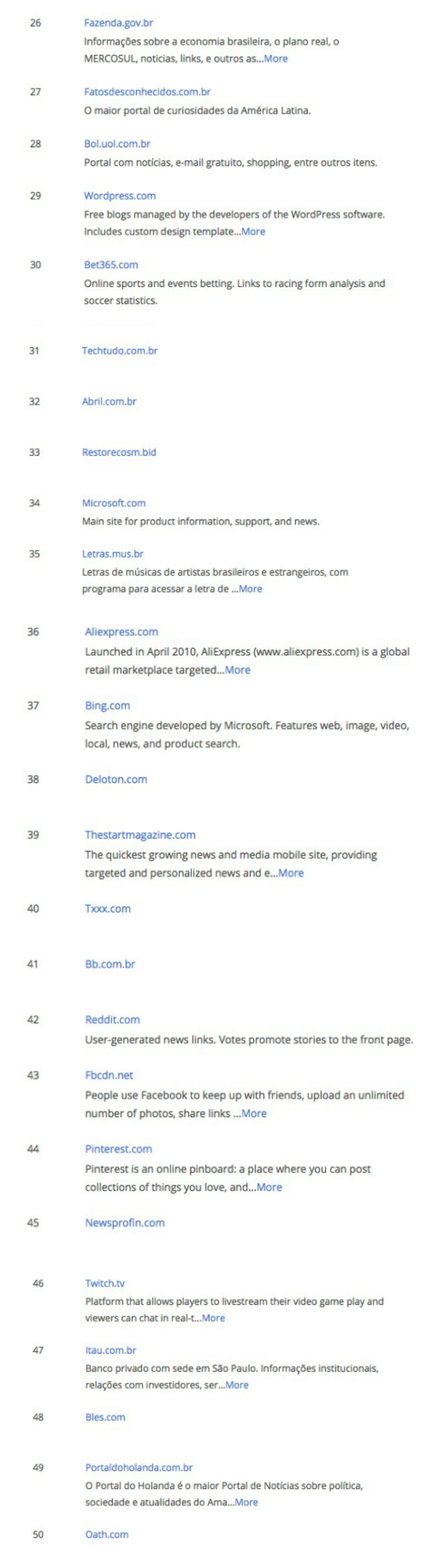 O Portal do Holanda é o 49 site mais acessado no Brasil, segundo lista dos top 500 do Alexa, da Amazon.Veja resultado alcançado na semana:
