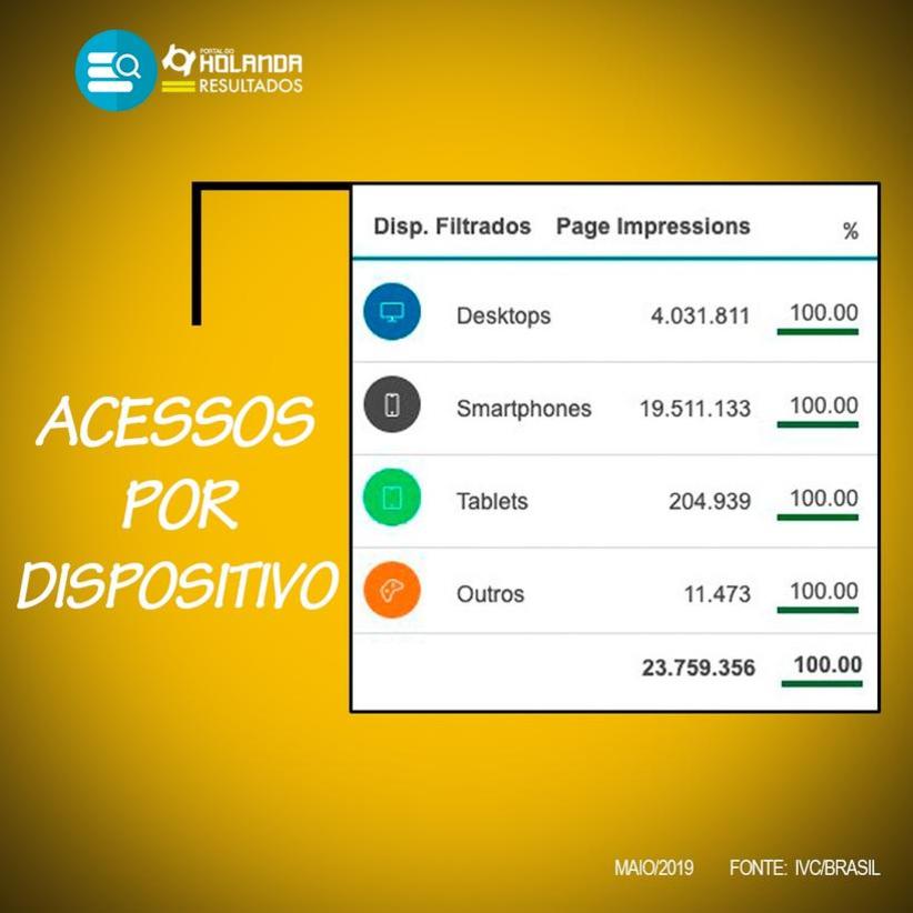 O celular é a grande ferramenta usada pelos internautas para acessar o Portal do Holanda. Veja gráfico acima.