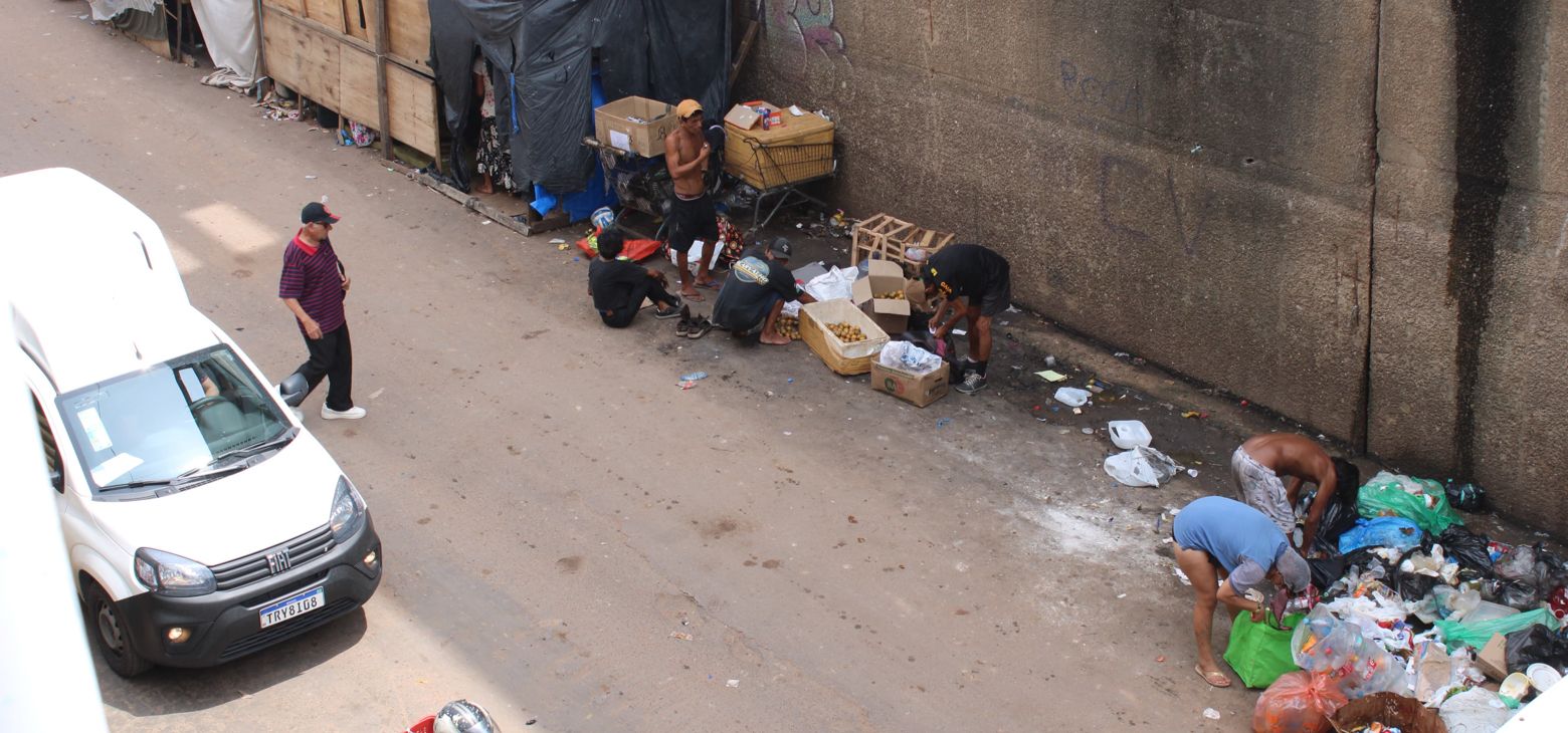 O centro, que é cantado como histórico, expõe mais ainda essa miséria, com gente "sem estômago" catando alimentos no lixo.