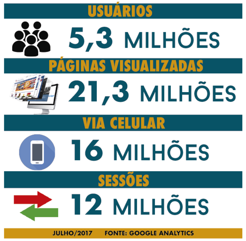 Os números do mês junho, já concluidos e submetidos a rigorosa auditoria do Instituto de Verificador de Comunicação(IVC), estão no certificado abaixo e contabilizam 20.284,375 páginas visualizadas, 4,4 milhões de Unique Browsers ( recorrentes ou não) e 12 milhões de sessões abertas.