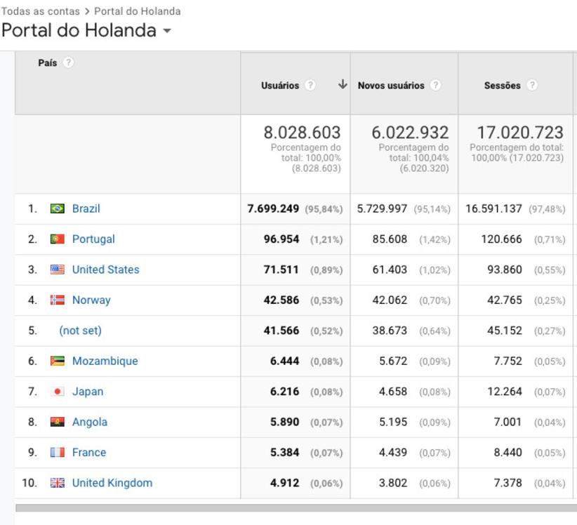 Depois do Brasil, Portugal é o País que mais acessa o Portal do Holanda , segundo o Google