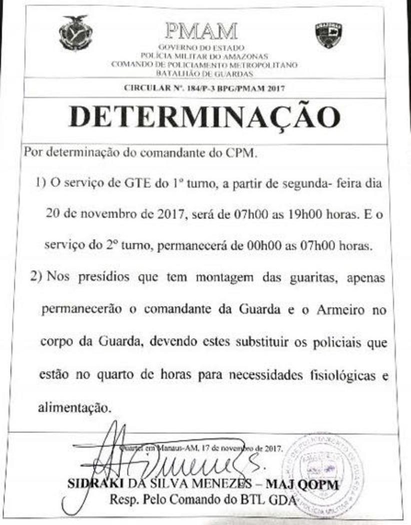 Para piorar a situação, o major responsável pelo batalhão, Sidraki Menezes( veja documento), está reduzindo o número de policiais que deveriam manter a segurança externa do presídio. Com que objetivo? O caos ? A sociedade, que assiste estarrecida mais esse episódio, espera que as autoridades se antecipem a uma tragédia e poupem a todos de dor e luto.