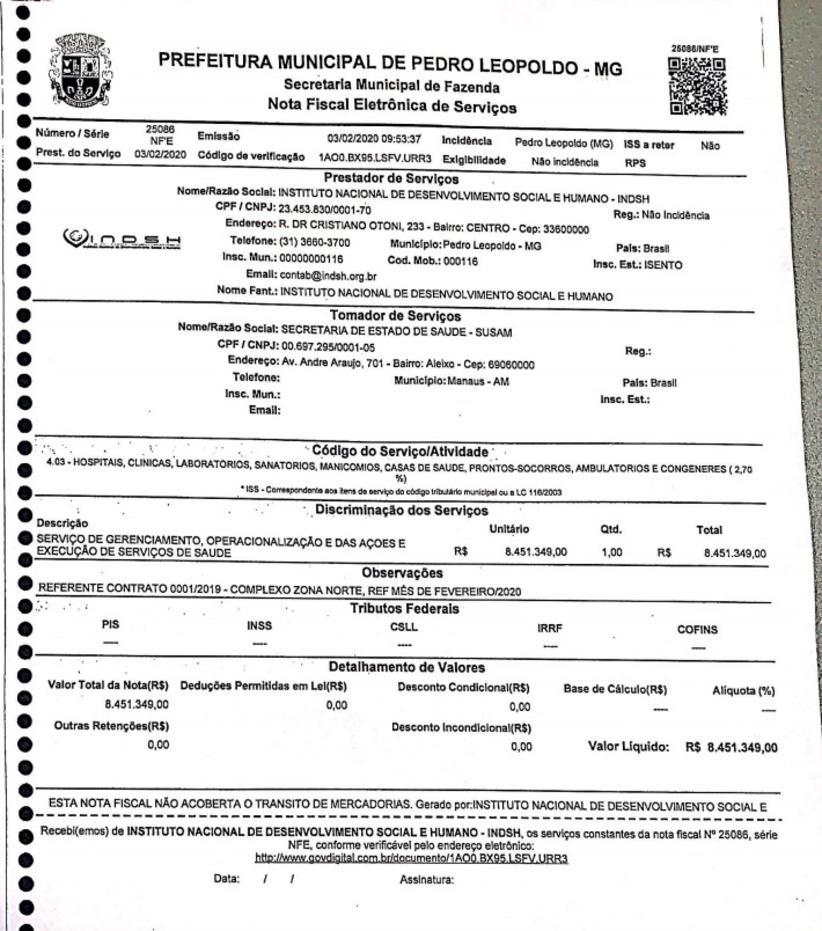 Os contratos do governo do Amazonas com fornecedores não penalizam apenas o Estado em razão do sobrepreço já constatado pela CPI da Saúde. Penalizam a cidade de Manaus, excluída do processo de partilha de impostos. Estima-se que deixe de entrar nos cofres da Prefeitura, somente com o ISS desviado para outras cidades, cerca de R$ 50 milhões/ mês. O caso mais escandaloso é o do Instituto Nacional de Desenvolvimento Social e Humano - INDSH. contratado em abril para administrar o Hospital Delfina Aziz, a um custo mensal de R$ 8 milhões. Invés de emitir notas via Prefeitura de Manaus pelos serviços prestados, burlando a lei Complementar 16/2003, o instituto usa sua inscrição municipal em São Leopoldo, Minas Gerais, município de onde as notas são enviadas para o governo do Amazonas. Um imposto que deveria ser recolhido em Manaus - com alíquota de 5% de ISS, acaba ficando em outra cidade.