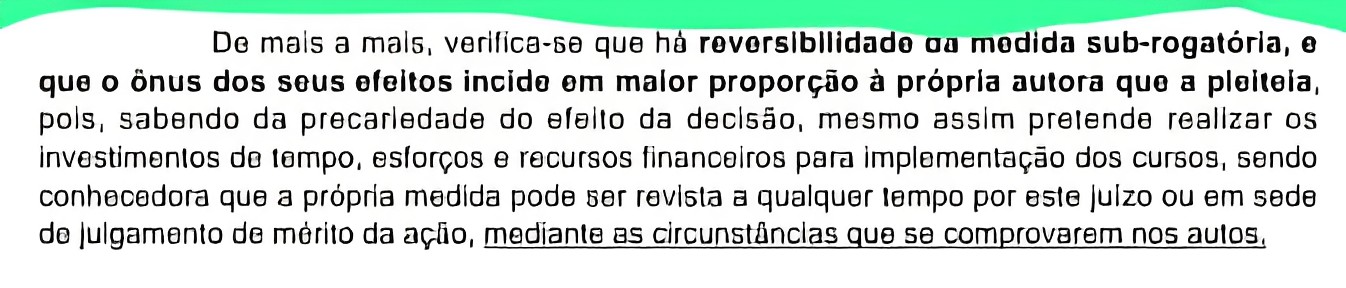 Ora, o juiz não atentou para o fato de que, mesmo admitindo a precariedade de sua decisão, o risco de lesão aos estudantes é altíssimo, mas priorizou interesses de instituições privadas que não passaram pelo crivo do Ministério da Educação e nem estão habilitadas para ministrar medicina.
