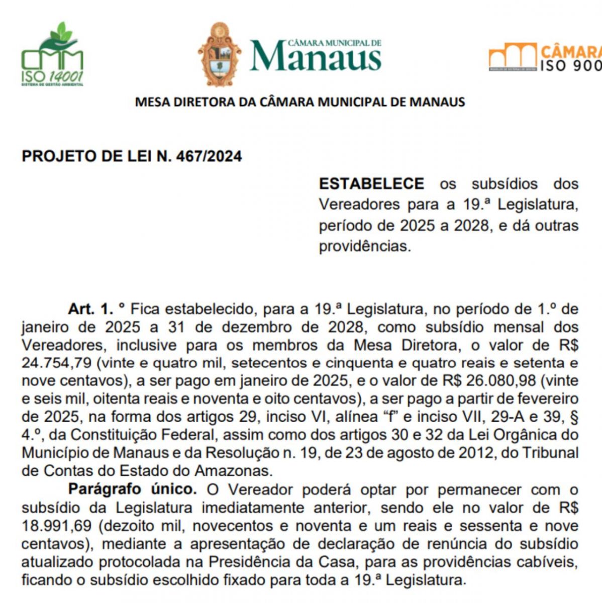 ASSUNTOS: Amazonas, aumento salarial de vereadores, cmm, Manaus