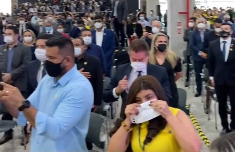 No salão suntuoso do Centro de Convenções Vasco Vasquez, nenhum cuidado com aglomerações. Pelo contrário, o governador autorizou a entrada de centenas de admiradores do presidente, que antes se concentravam fora do salão. Era necessário uma claque que aplaudisse e gritasse ”mito”.