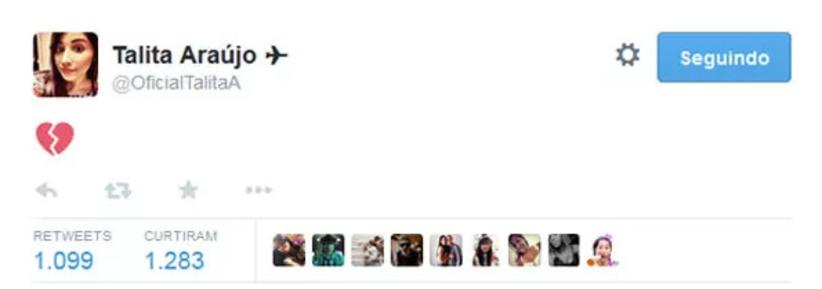 Enquanto isso, Talita usava as redes sociais para lamentar a postura do namorado. A ex-BBB colocou um coração partido e recebeu o apoio dos fãs.