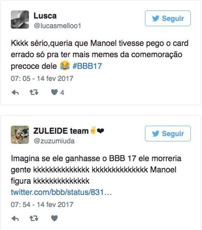 BBB17: Após mico, Manoel ganha imunidade e vira meme