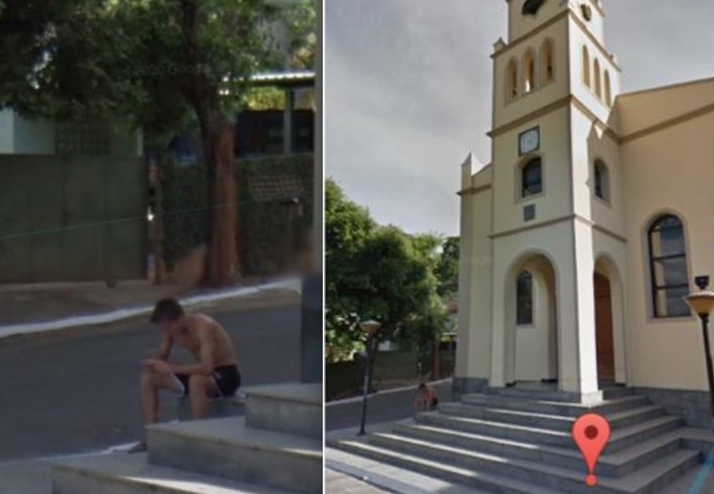 De acordo com ele, ele aparece sentado na escadaria da Igreja da cidade. Nas imagens, realmente um menino aparece sentado, mas de cabeça baixa sem ser possível identificar o rosto.