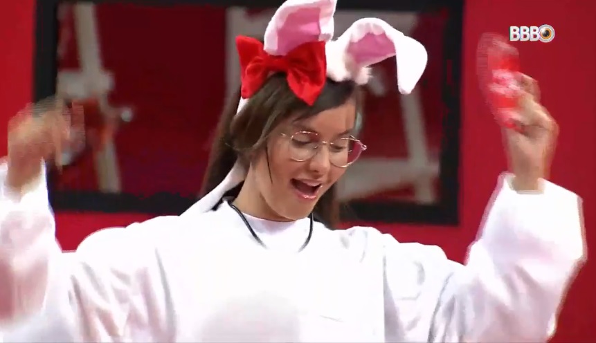 Vestidos de coelhos, todos os participantes exceto Arthur, que é o Líder da semana, disputaram a prova. A cada vez de um participante, o brother ou sister devia escolhe um ovo e ler a mensagem que tem dentro. Vencia quem ficasse por último na prova, que no caso, foi Thais.