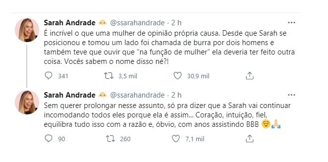 Cegueira dentro da casa - A percepção dos brothers sobre o jogo está bem diferente da realidade, já que nas redes sociais, Projota, Karol Conká e companhia andam recebendo muitos comentários negativos, enquanto Sarah e Gil foram exaltados ao apoiarem Lucas e Juliette.