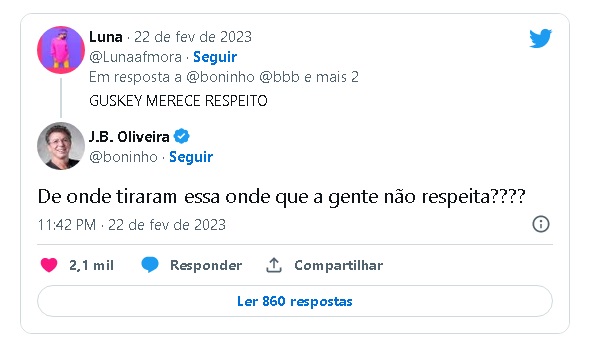 Em seguida, o diretor do reality, Boninho rebateu: "De onde tiraram essa onda que a gente não respeita?".
