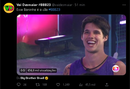 A câmera da edição ao vivo do programa focou no modelo quando Anitta cantava "Contatinho" e mostrou o brother rindo e se divertindo com o show da poderosa.