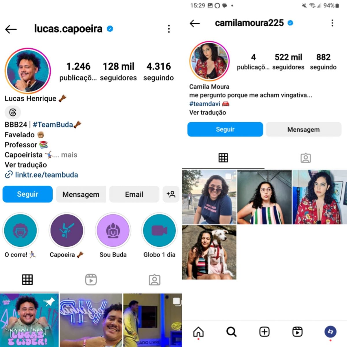 Lucas possui até hoje (3) 128 mil seguidores, já Camila que tinha menos de 1 mil seguidores, até o fechamento desta publicação, já possui 522 mil.