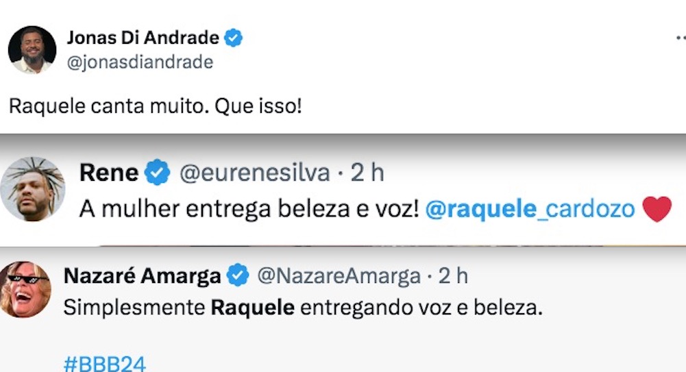 Raquele soltou a voz durante a festa no BBB24 nesta madrugada (16) e surpreendeu os internautas que elogiaram a performance da sister nas redes sociais.