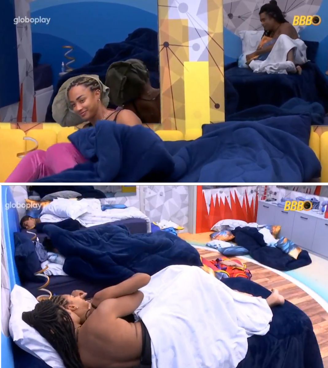 Durante a tarde, cada um tirava um descanso em uma cama, quando Aline resolveu sair da sua e deitar-se de conchinha com o ex-affair.