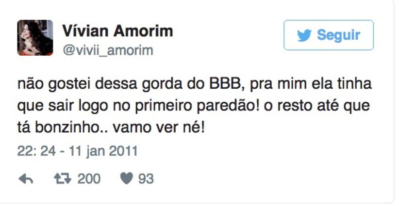 A ex-Miss Amazonas já vem até causando irritação em alguns fãs do programa, isso porque em 2011, ela destilou algumas ofensas à BBB roraimense Paulinha Leite. Outros integrantes também não escaparam da língua, ou melhor, dos dedos afiados de Vívian, confira.