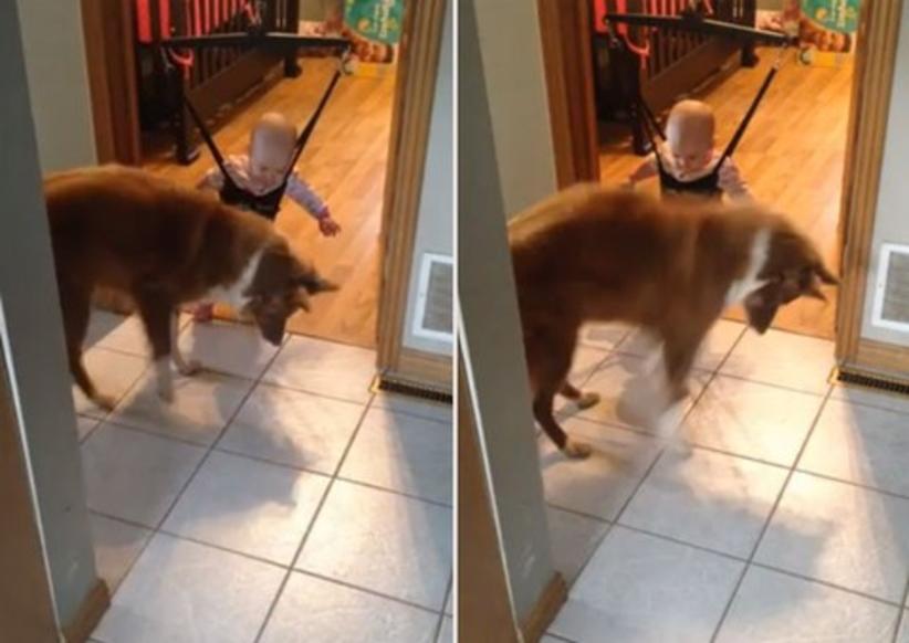 O vídeo foi publicado pela canadense Sabrina Sauve. O cãozinho de estimação mostra para o bebê Alexis, como usar a cadeira de balanço.