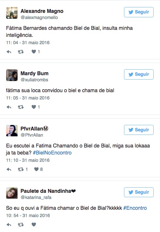 A gafe foi tão sutil que nem a apresentadora e nem Biel perceberam o erro. Depois de um tempo, Fátima foi avisada da gafe.