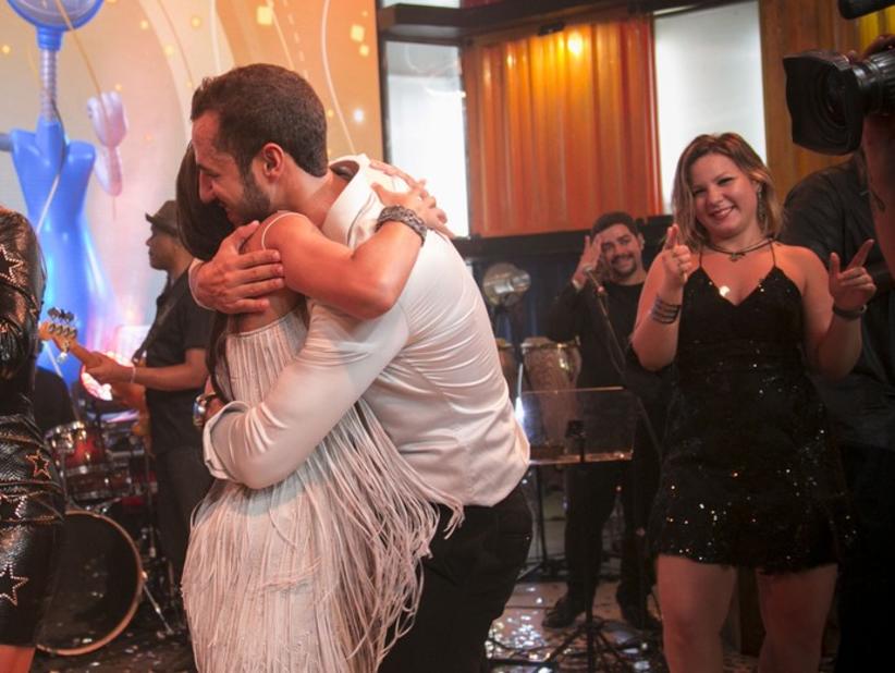 Cacau tratou de tascar beijos em Matheus enquanto Munik evitou cumprimentar Juliano Laham.