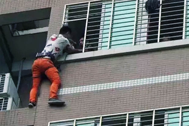Amante de uma mulher casada, um homem arriscou a vida para não ser pego no flagra pelo marido traído. O caso aconteceu em Shishi, província de Fujian, na China.