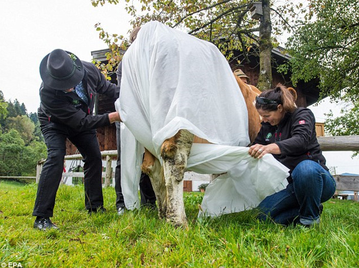 Agricultor inovou ao fazer suas vacas utilizarem fraldas após proibição da União Europeia contra o uso de fertilizantes em encostas íngremes.