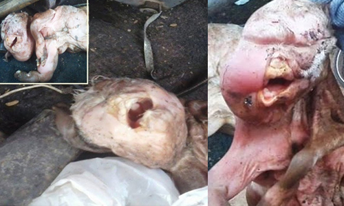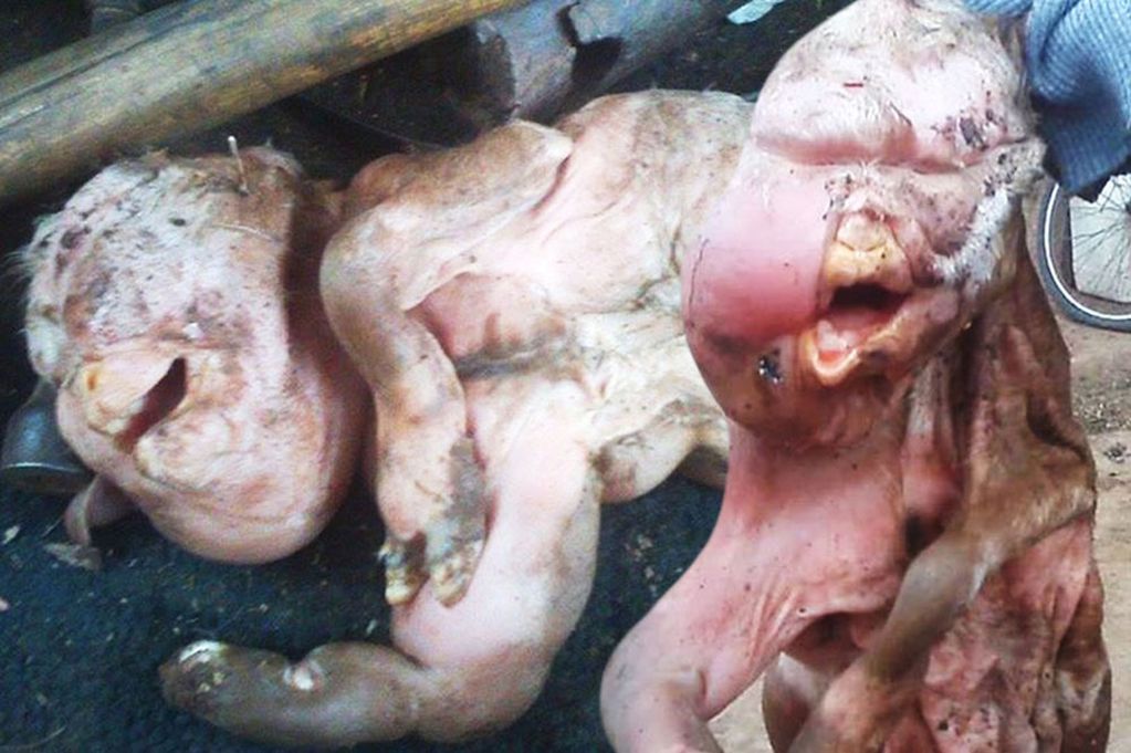 "O animal já estava morto quando nasceu. Só queremos enterrá-lo o mais rápido possível. Foi claramente uma mutação genética causada pelo uso excessivo de agrotóxicos",  explicou.